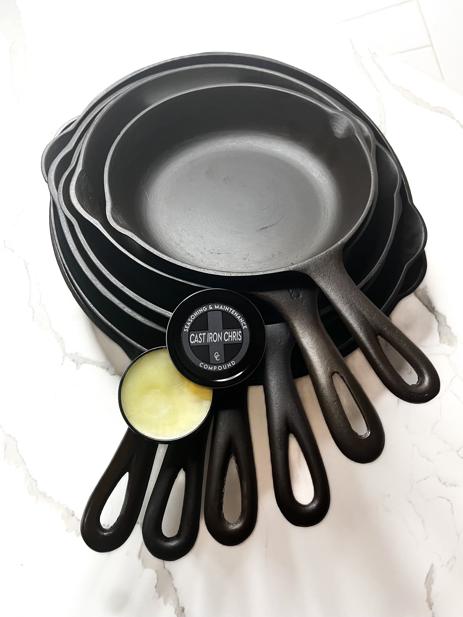 Chris uses one product exclusively: his own Seasoning & Maintenance Compound.