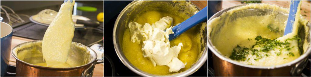 - Add the goat cheese and the parsley and stir to combine.
