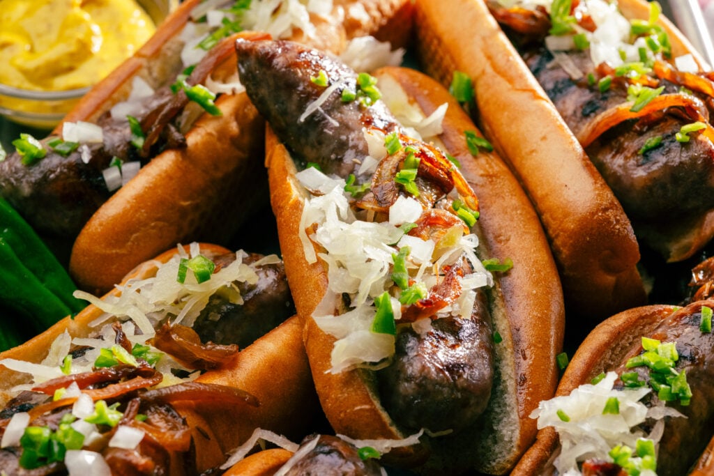 When we talk about beer brats, we’re really talking about Wisconsin-style beer brats. While there is debate on the issue, the style seems to have originated in the vicinity of Sheboygan. The standard, accepted version consists of a bratwurst sausage simmered in a bath of beer—usually a simple lager—sliced onions, and a little butter. The sausage is served in a crusty roll, often with some good spicy brown mustard, piled high with the onions from the bath.