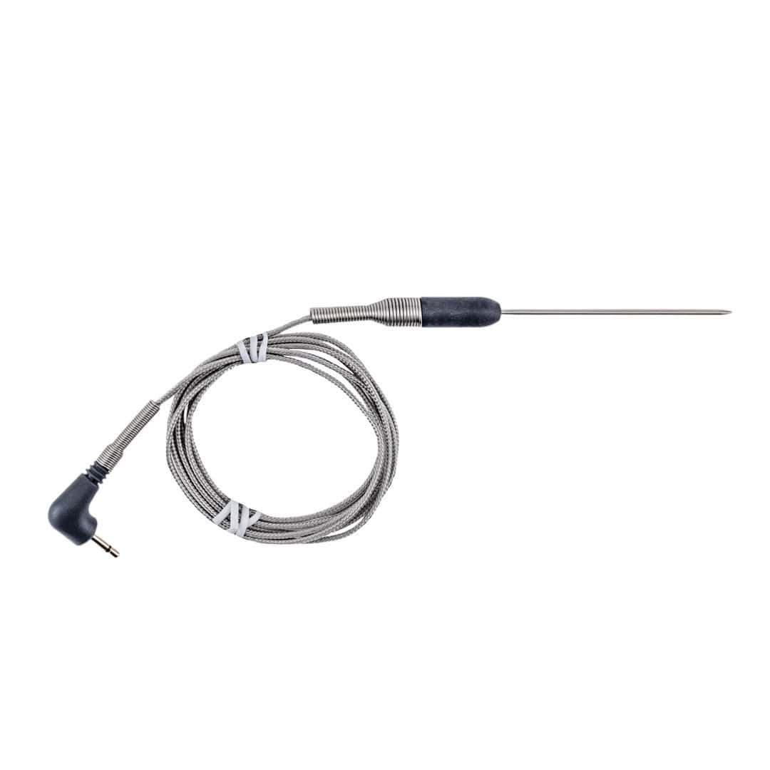 - Place ribs in the smoker. Insert a 2.5" needle-probe into the ribs. Do this between the bones if the ribs have less meat or in the thickest part of the meat if they are very meaty. The needle probe is thin enough to fit into the rib meat without touching bone.